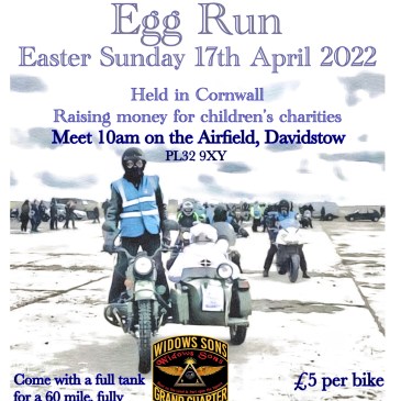 Widow Sons Kernow MRA are pleased to announce that this week we have delivered over 250 Easter Eggs across CornwallAnd the total amount raised is now£5,000 We would like to thank everyone that has supported us this year in this amazing achievement, with a special thanks to Bro Carl Davenport founder of WS MRA who … More EGG RUN 2022 ANNOUNCEMENT